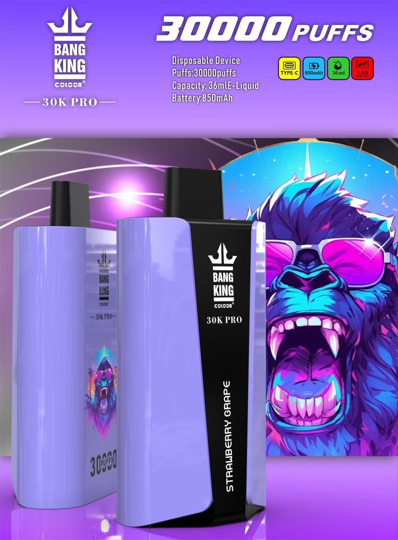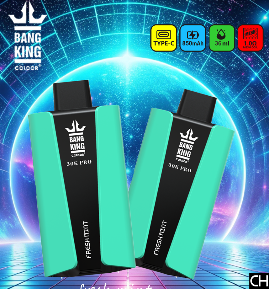 Die Bang King 30000 Puffs Pro Einweg E-Zigarette ist die ideale Wahl für Vaper, die Wert auf lange Haltbarkeit, starke Performance und intensiven Geschmack legen. Mit bis zu 30.000 Zügen, einem 36ml E-Liquid Tank und einem leistungsstarken 850mAh Akku bietet dieses Modell eine außergewöhnliche Kombination aus Komfort, Ausdauer und Genuss. Dank modernster Mesh Coil Technologie erleben Sie gleichmäßigen Dampf, authentisches Aroma und eine besonders sanfte Inhalation.