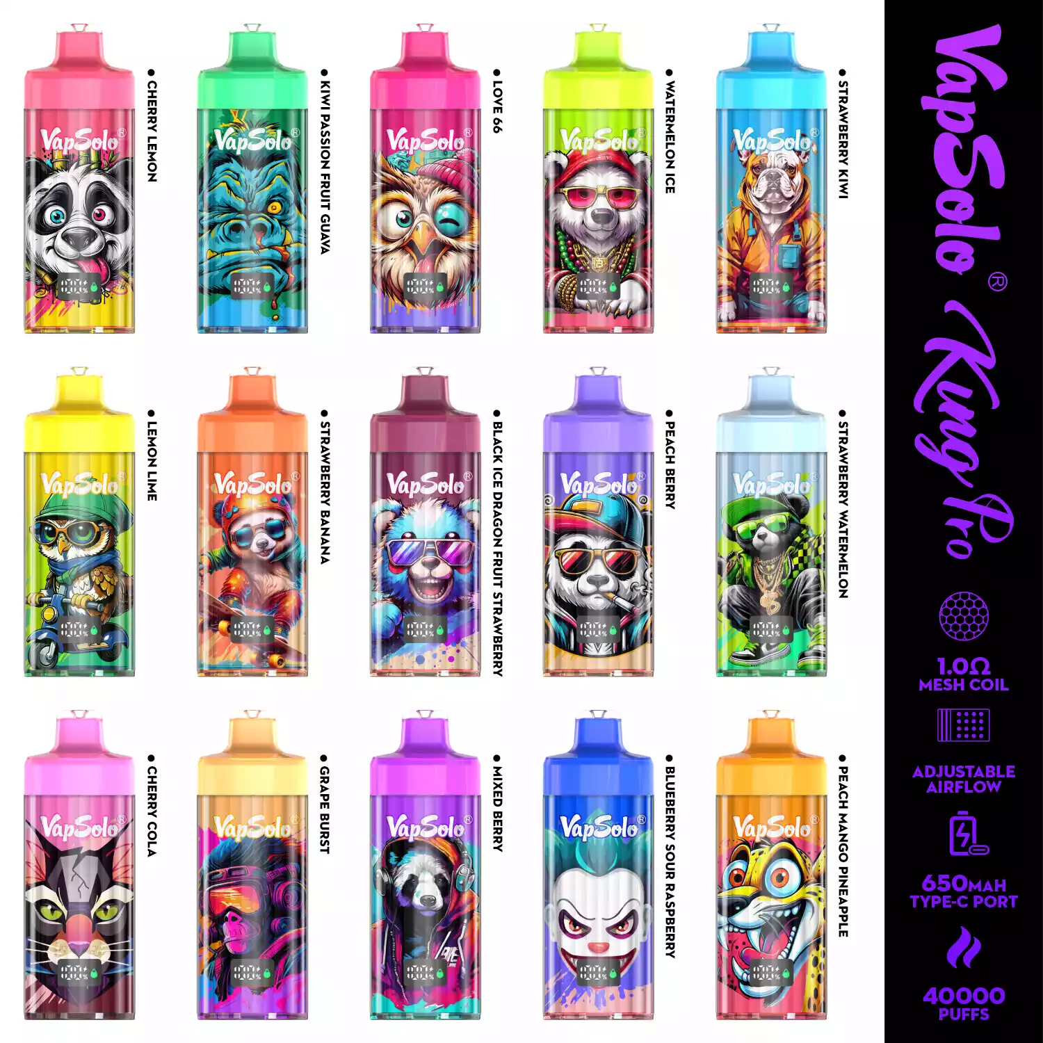 Die Vapsolo KING PRO-40K setzt neue Maßstäbe im Segment der wiederaufladbaren Einweg-Vapes. Mit einem beeindruckenden 40 ml E-Liquid-Tank, einer zuverlässigen 650 mAh Batterie, moderner Mesh Coil-Technologie und einem praktischen LCD-Display bietet dieses Modell eine Leistungsklasse für sich – für bis zu 40.000 Züge Dampferlebnis.