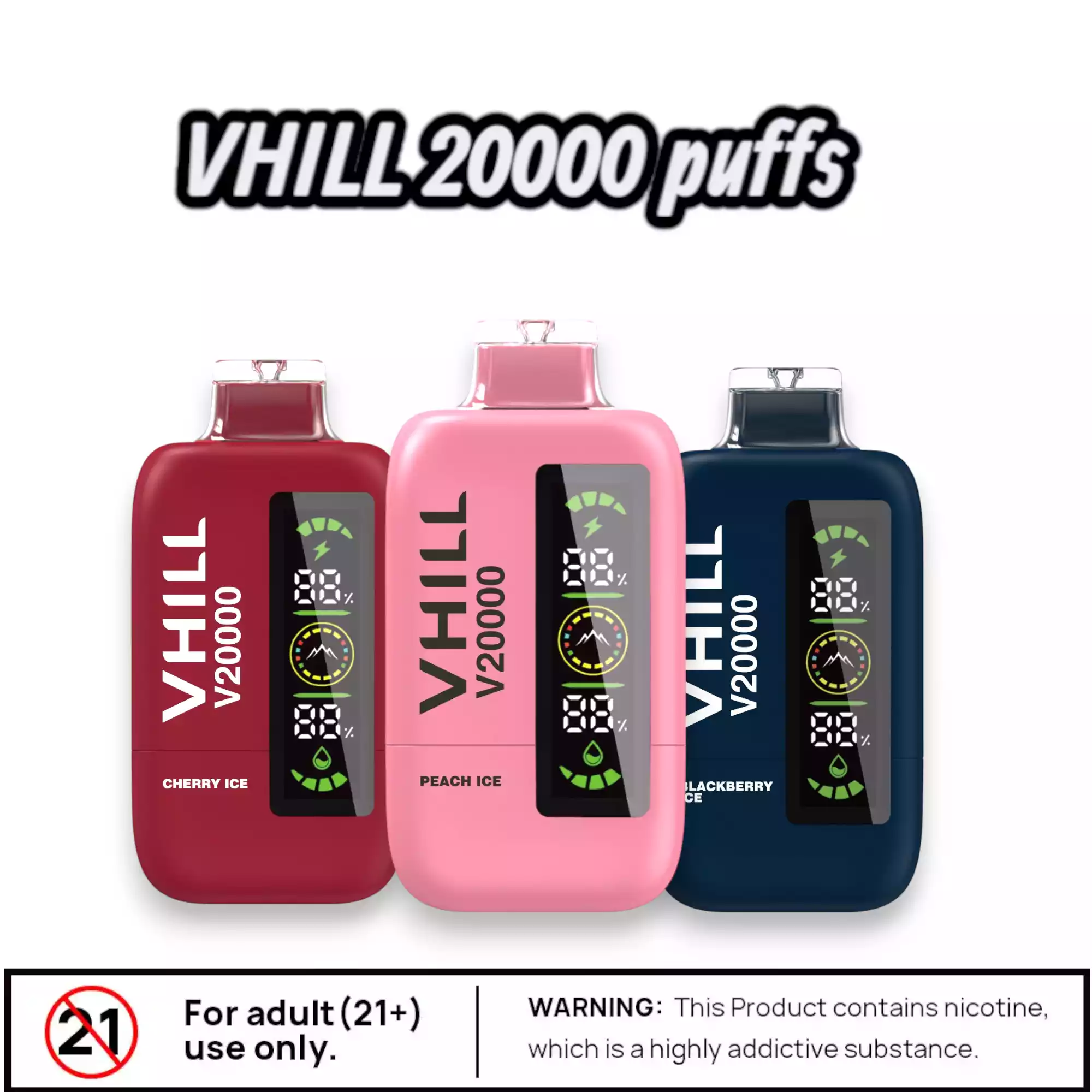 Die 1,0Ω Coil sorgt für eine gleichmäßige Dampfentwicklung, während die 12 abwechslungsreichen Flavors von fruchtig-frisch bis hin zu süß und eisig reichen. Mit 5% Nikotingehalt bietet die VHILL 20000 Puffs ein intensives Dampferlebnis, das perfekt auf die Bedürfnisse von erwachsenen Dampfern zugeschnitten ist.